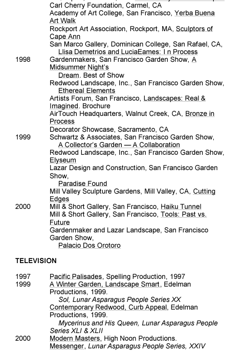 Biography - Llisa Demetrios page 1 Download Complete Biography for printing (pdf file) Home | Store | Help ©Copyright Artists Forum, 2004